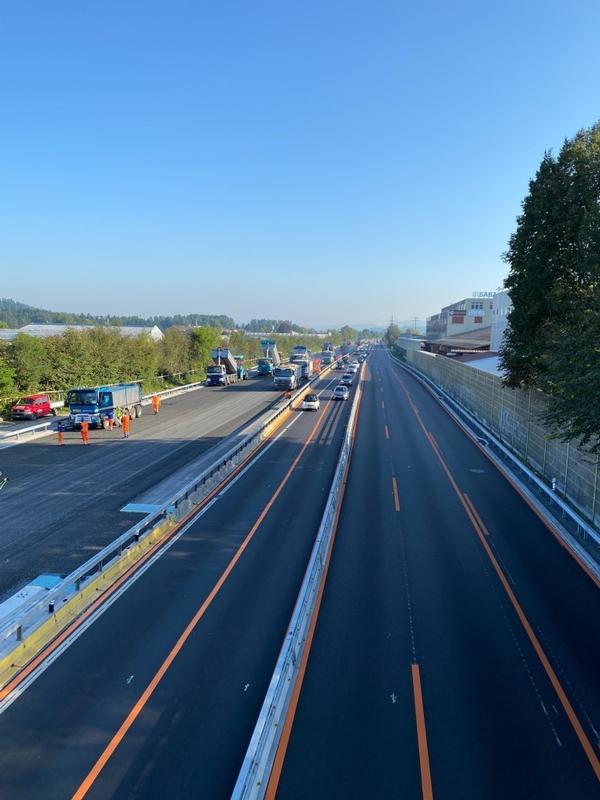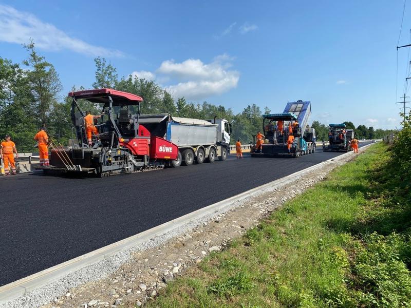 Die ARGE Conventus, bestehend aus den Firmen BÜWE Tiefbau AG, SUSTRA Tiefbau + Strassen AG, SPAG Schnyder Plüss AG, Hans Renggli Bau AG sowie die Gebr. BRUN AG, hat in diesem Gemeinschaftsprojekt in den vergangenen zwei Jahren, an rund 45 Einbautagen und auf einer Distanz von 8,2 km, 39’985t Belag eingebaut (Binder und Deckschicht, PA und SDA-Belag).