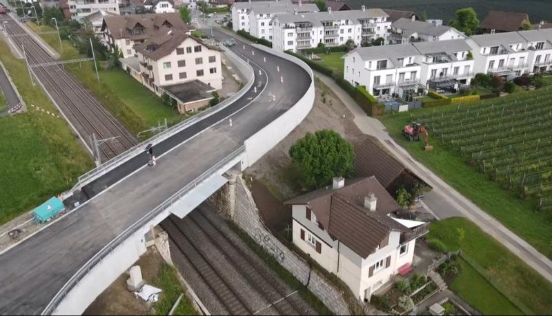 Eröffnung der Strasse: ab 03.06.2022 für den Busverkehr / ab 22.07.2022 für Fuss-, Velo- und den motorisierten Verkehr