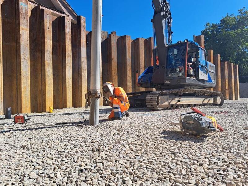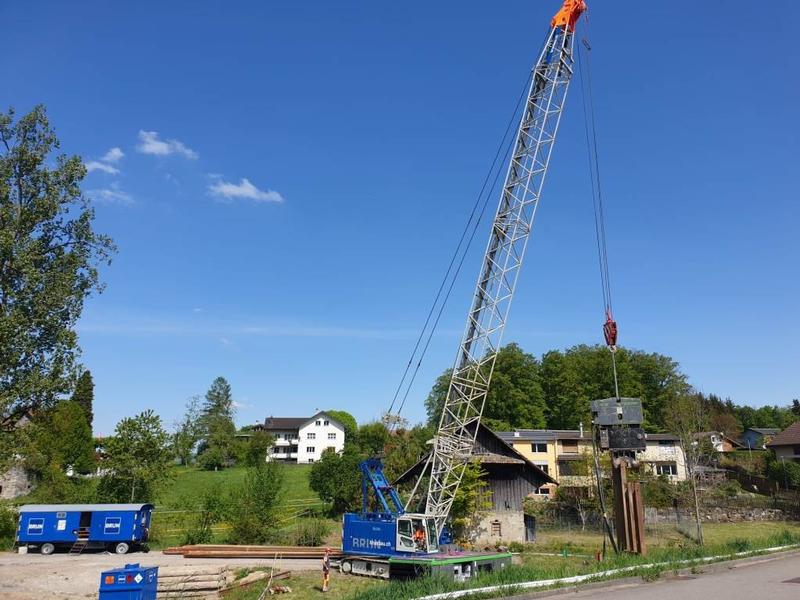 2700m2 Spundwände auf Felshorizont gerammt, inkl. 5 Tonnen Aussteifung