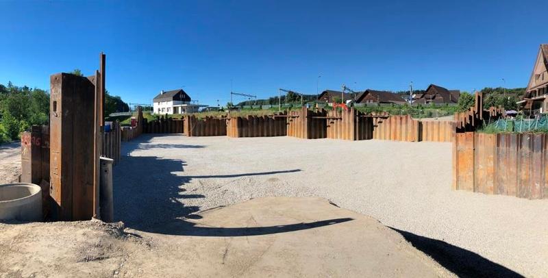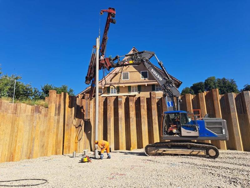 Für die Arealüberbauung des Zentrums Benzenschwil durfte unsere Spezialtiefbau Abteilung den Baugrubenabschluss mittels Spundwänden und Stahlaussteifung erstellen.