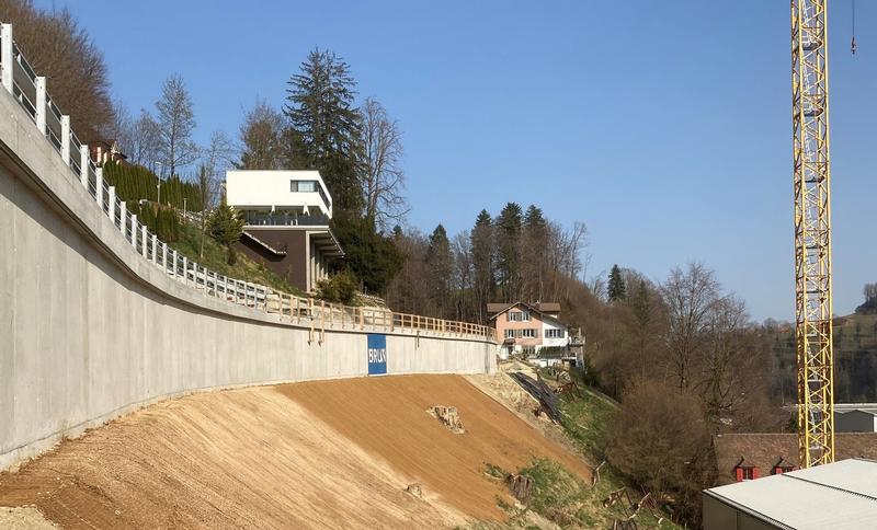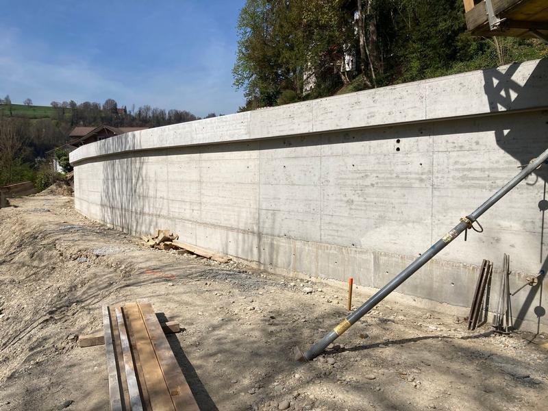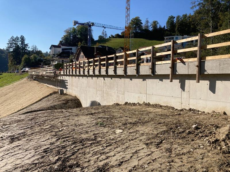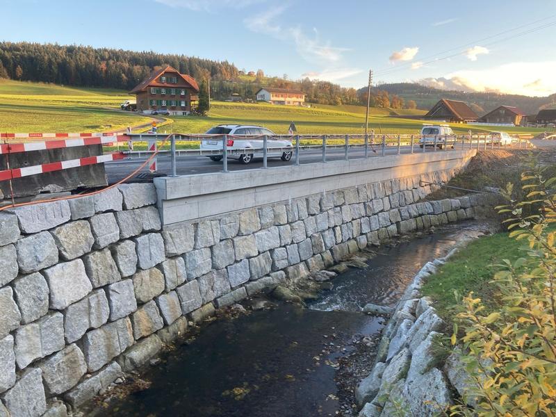 Durch uns wurden fünf neue Blockstein- und vier Betonstützmauern erstellt. Die Bauarbeiten umfassten auch den Neubau von zwei Brücken über den Bielbach, zwei Bachdurchlässe und 6 neue Bushaltestellen.