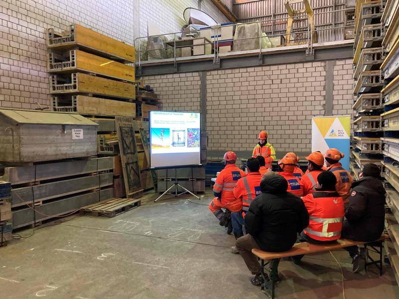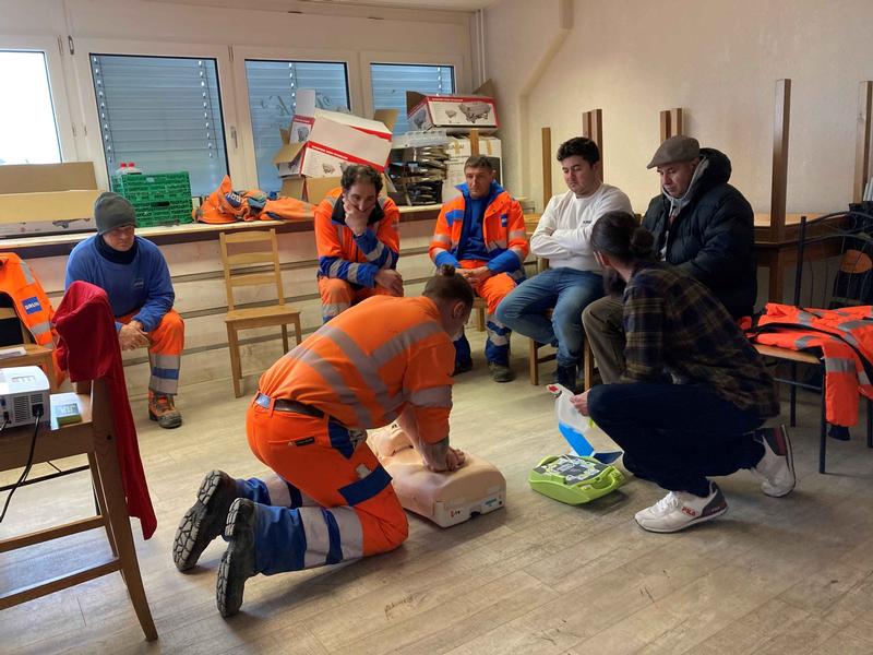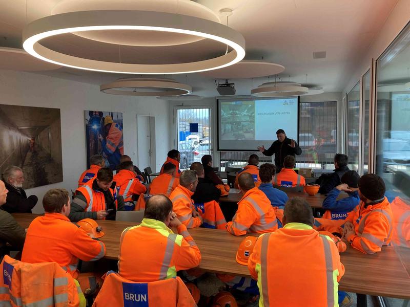 Beim diesjährigen Sicherheitsparcours wurden all unsere Mitarbeiter speziell auf das Anschlagen von Lasten mit Bagger und Kran ausgebildet, auf die Gefahren und Auswirkungen beim Stolpern, Stützen und Herunterspringen sowie in erster Hilfe geschult. Alle Teilnehmer wurden erneut für diese äusserst wichtigen Themen in der Arbeitssicherheit sensibilisiert.