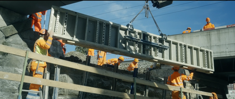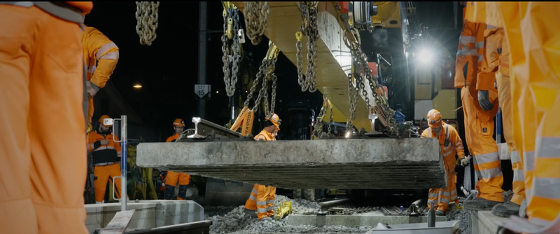 Für die Wiederlager wurde ein schnell erhärtender Beton (Q-Flash) gewählt, um die Ausschalfristen um ein maximum einzukürzen. Die vorfabrizierte Betonstahlbrücke wiegt 105to und konnte mittels einem 500to Pneukran von der Firma Senn AG versetzt werden. Für den Gleisbau war die Firma C.Vanoli AG zuständig.